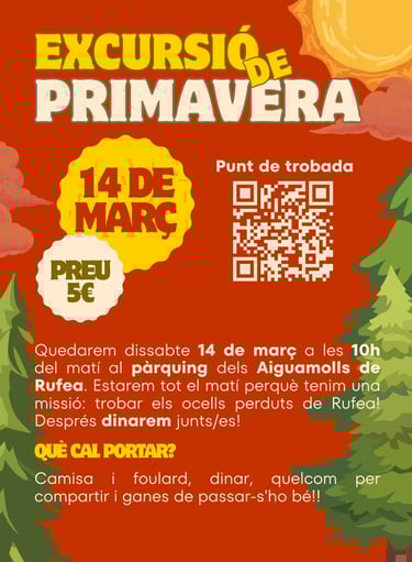 El pròxim 14 de març celebrarem l’excursió de primavera, una activitat oberta a tot l’agrupament: escoltes, famílies, socis/es i kraal.
